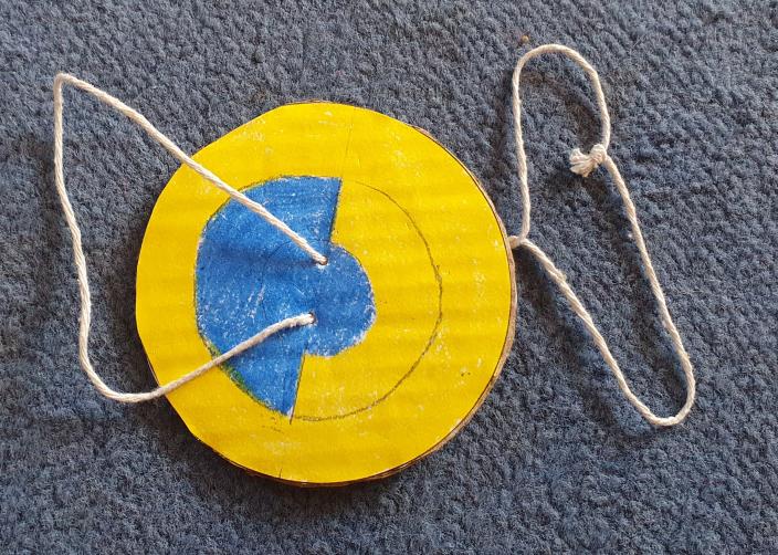 Fun at Home - Colour Spinner When we are doing some painting or other art activities you will noticed that when two colours are mixed together you get a third colour. If we mix red and yellow, we get orange, mix yellow and blue we get green and so it goes. We can make a spinning colour wheel that shows this really well and we can make some different sounds at the same time. How long to create 30 minutes Age group 5 years and up (young children will require assistance from an adult) Please take care when using the equipment and sharp skewers. Equipment You will need: Sheet of ordinary white paper Sheet of card (from a cereal box or something similar is fine) String – about 60cm per spinner Glue stick Textas or sharpies, crayons or even pencils Pencil Ruler Compass or something round to trace around so that all your circles are the same size Making Instructions Step 1 - Trace 2 circles per spinner on the white paper and 1 circle per spinner on the card. Step 2 - With a pencil draw two circles inside each of the circles on the white paper, to create 3 bands. Step 3 - Use a pencil to divide one of the circles in half and the other one in quarters (look at the picture at the top to see what we mean). Only do it very faintly so that the lines do not show up like they do in our sample. Step 4 - Now to choose the colours – work on two primary colours (red, yellow and blue) first then experiment with other colours later. (if you are using crayons or pencil, press hard). It is easier to colour in the circles before cutting them out. Step 5 - Cut out the circle from the card and the circles you have coloured in. Step 6 - Glue the circles onto the card, one on each side. Make sure to put the glue all the way to the edges and in the centre also. Step 7 - Trace your spinner onto a scrap of white paper and cut out. Fold it in quarters. This will show your where the centre is. Place two holes approximately half a centimetre either side of the centre of the circle. Place this carefully on your spinner. It is important to have these holes central as the spinner will be wonky if they are off centre.(ask for assistance if you are finding this hard). Step 8 - A bamboo skewer or needle is good for pushing through to make the holes (place some spare card underneath to protect your work surface). Thread the string through both holes and tie the ends together. A needle comes in handy for this. How to get your spinner to work Place your ring finger through the string loops and either end of the spinner and hold the string with your thumb and first finger. Spin the spinner around then pull tight. Let in unwind and wind up again, then pull tight again. When you get it going really fast you will find it easy to pull and release (this is why it important to have the holes as central as possible). You get better at it the more you practice. As you spin the disc you can see the solid colour on the outside and centre of the circle, but on the middle band you see the two colours blended. Questions and other things to try Does this work with all colours? Do the wheels work better if they are small or large or medium size? Do different mediums like pens, pencils, textas or crayons work better than others? As you have seen, there are two different colour shapes. Which one worked best – the Quartered spinner of the halved spinner What happens if you have all of the primary colours on the one colour spinner? Want to add some sound? Put a small notch in the edge of the spinner. What effects do you get if you create different patterns on your spinner? What's happening? Why do you think this colour change is happening? It is called persistence of vision. When an object is moving very fast you are still seeing the first image when the second image is in your line of sight. That means that you are still seeing one colour and you see the second colour at the same time and it mixes the colours. Take a picture using your colour spinner and share on Instagram hashtag #museumofthegoldfields or Facebook remembering to tag us. This Fun at Home activity is presented by: