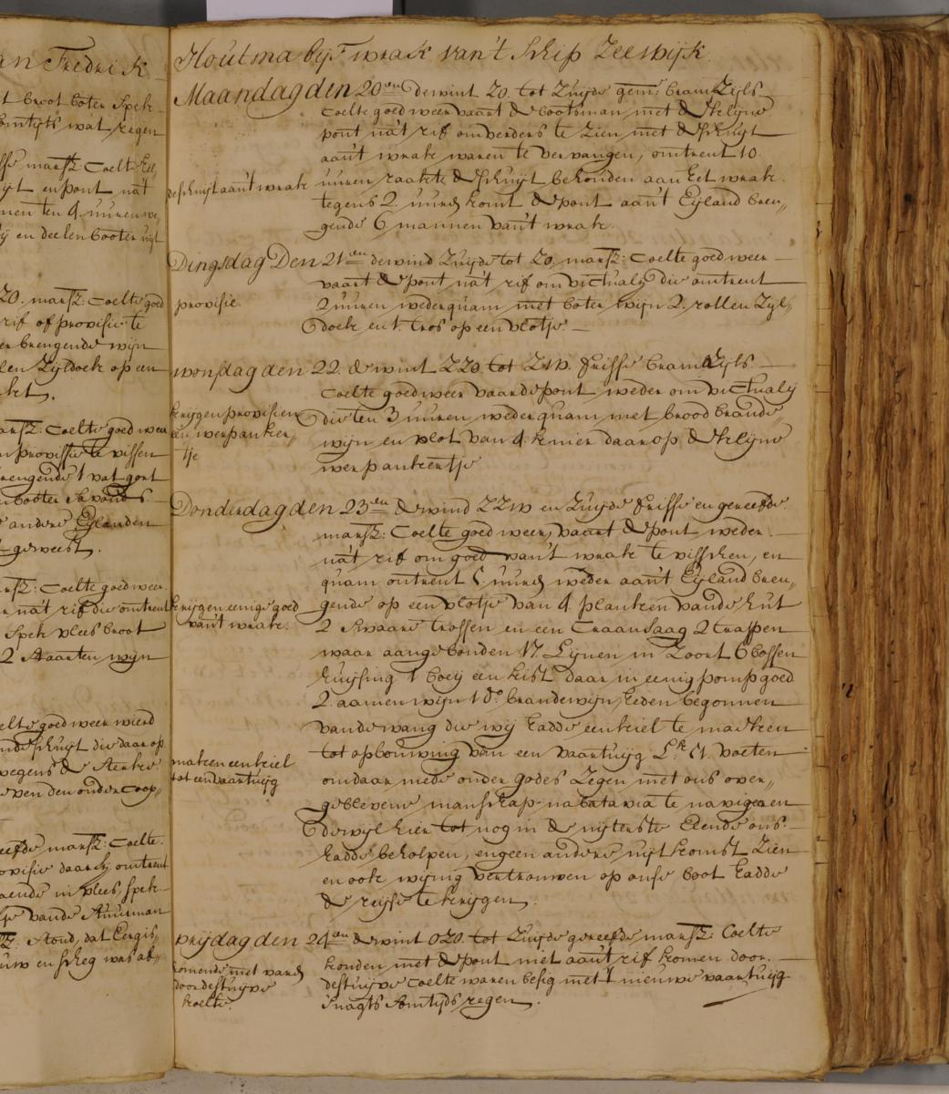provisiede wind Zuijde tot Z:O: marsZ: coelte goed weer