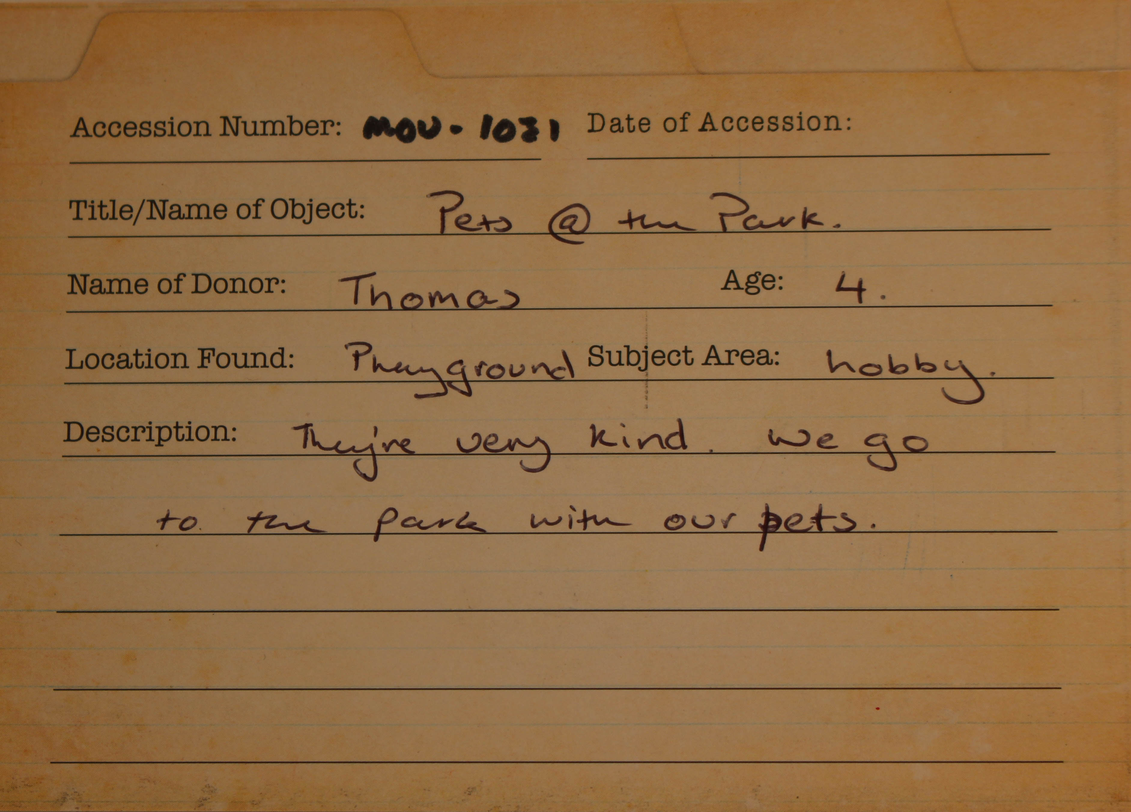 They're very kind. We go to the park with our pets.