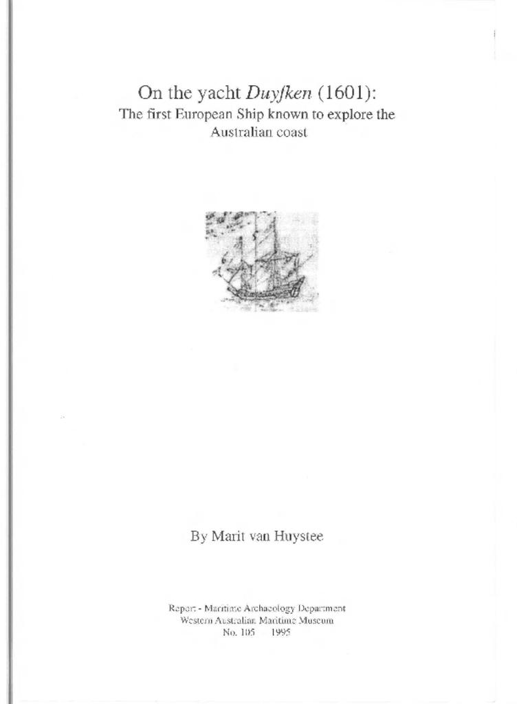 In the early phase of the Dutch expansion in the Indies there were more than one ship named Duyfken. This publication examines the history of the various ships named Duyfken in order to determine which one was actually involved in the exploration of Australia. Having identified the vessel, an account of her life in the Indies is given, which in turn provides evidence about the vessel and her equipment. This information is important because building plans were not used by Dutch shipwrights in the 17th century and this is therefore one of the limited sources of evidence about the construction and appearance of the vessel.